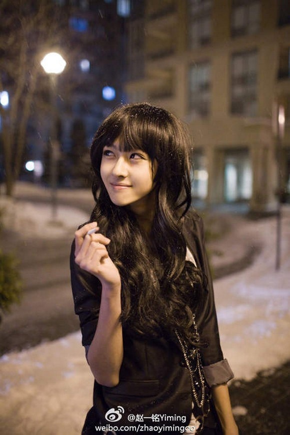 | Zhao Yiming thừa hưởng nét đẹp của cả bố lẫn mẹ. Khi mới nhìn ảnh, nhiều người lầm tưởng Zhao là nữ bởi vóc dáng mảnh mai,, nụ cười ngọt ngào. |