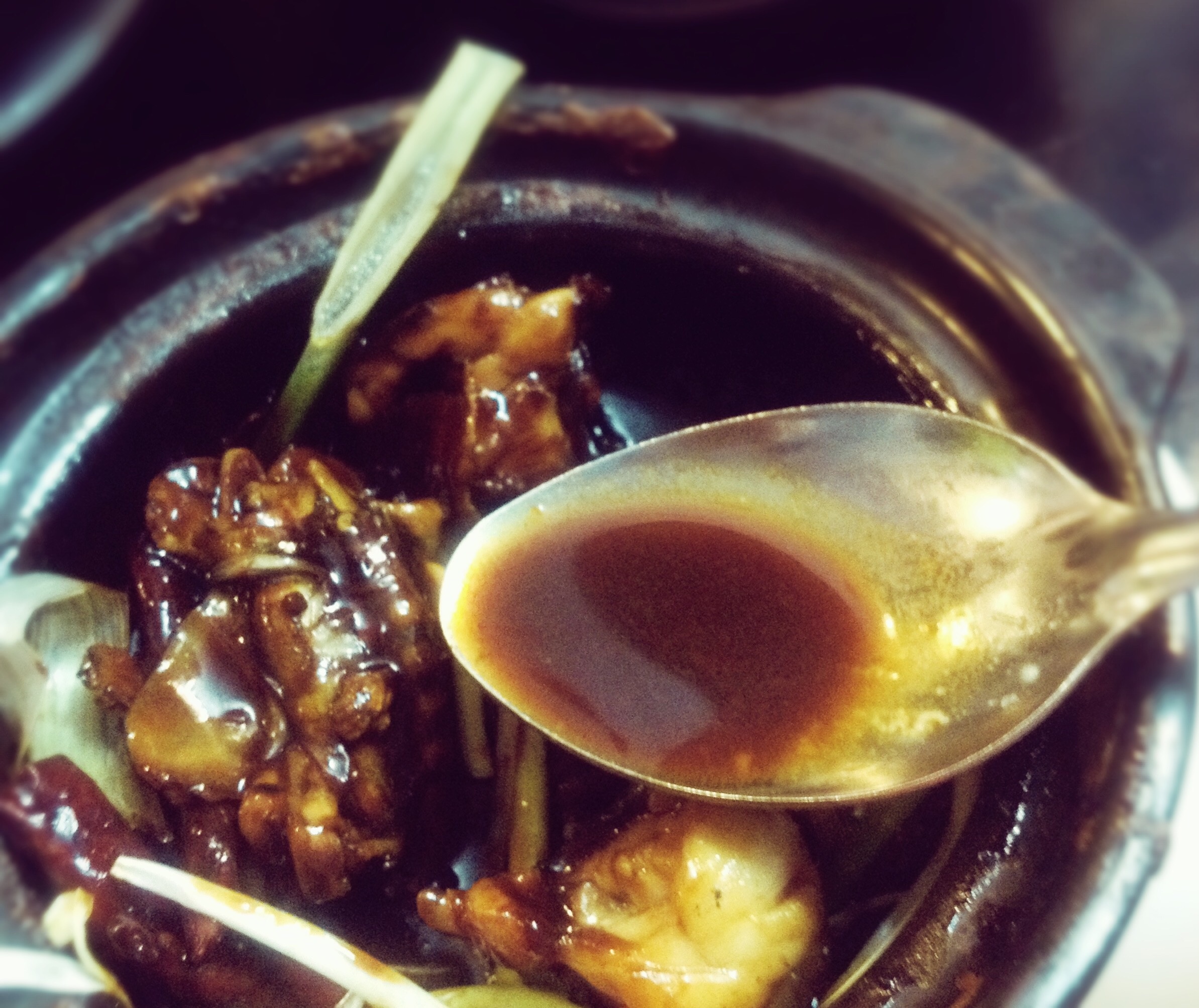 Cách thưởng thức cháo ếch ngon nhất là múc ếch và nước sốt từ niêu vào tô cháo...