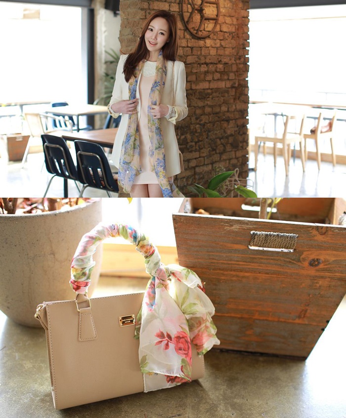| Bạn cũng có thể vận dụng khả năng phối trang phục sáng tạo của mình với những chiếc khăn choàng lụa hoặc voan mỏng họa tiết Floral để trông sành điệu, cá tính hơn. |