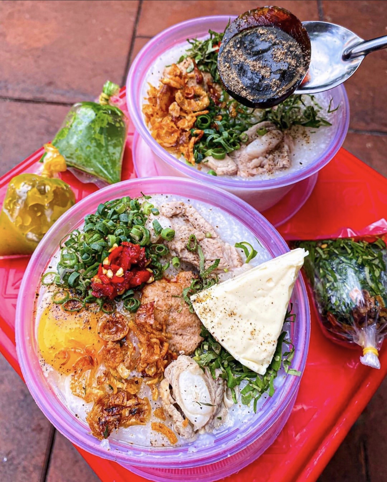 Nồi cháo nóng hổi và các nguyên liệu được sắp xếp gọn gàng, sạch sẽ khiến nhiều thực khách thích thú và yên tâm về chất lượng khi đặt món trực tuyến. Hầu hết tín đồ ẩm thực hài lòng bởi cháo ở đây được nêm nếm vừa vị. Phần cháo nấu đặc, các topping hoà quyện cùng gia vị tạo hương thơm hấp dẫn. Ngoài trứng Bắc Thảo, bạn có thể thêm phô mai hay trứng đập và khuấy đều cùng cháo nóng khi ăn để cảm nhận sự béo ngậy. Ảnh: Hukha.Foodaholic. |