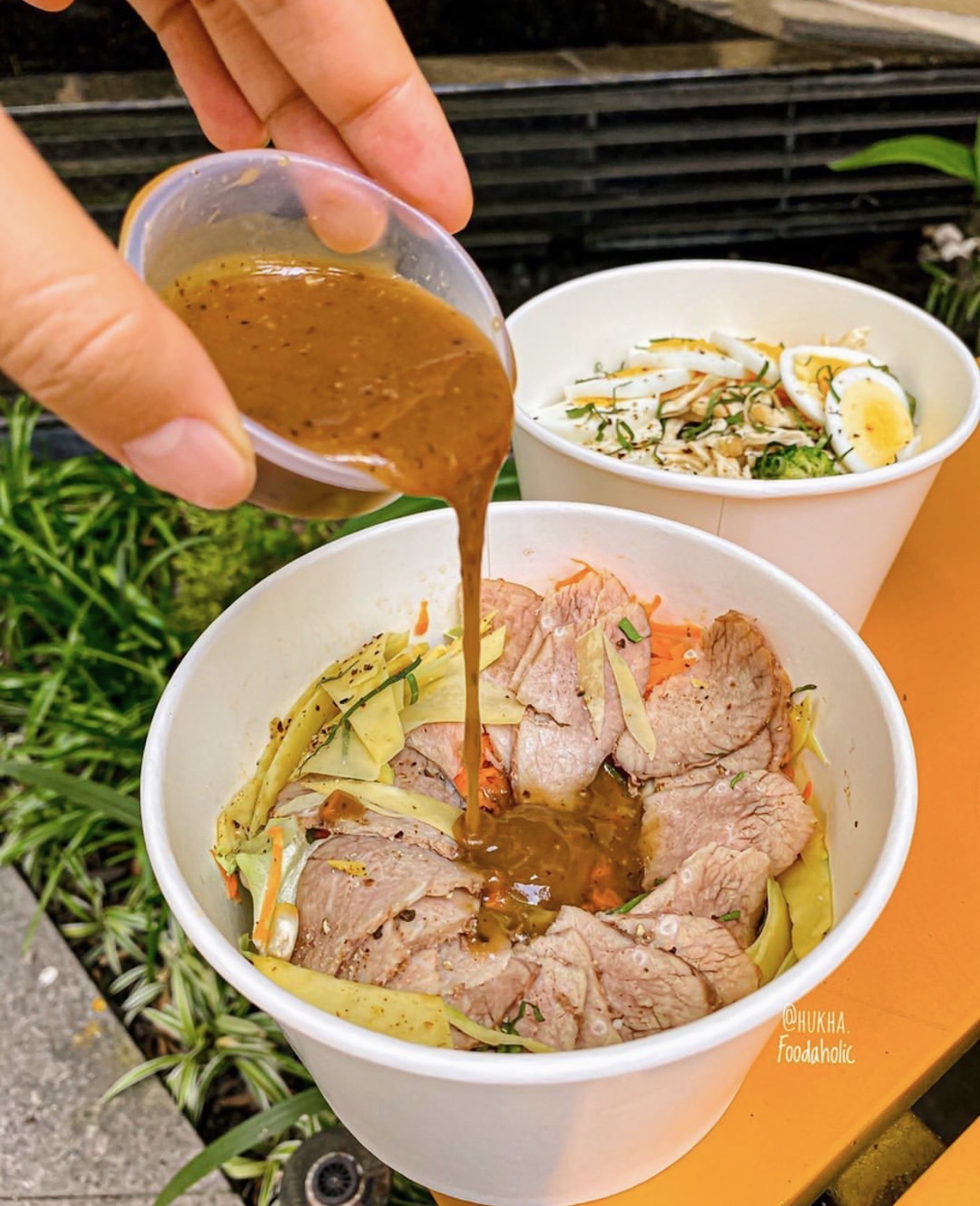 Bên cạnh salad gà, bạn có thể thường thức salad bò kết hợp cùng rau, đậu, bắp... đầy chất lượng. Thực đơn còn có 4 loại sốt cho bạn dễ dàng chọn lựa gồm tiêu đen, Địa Trung Hải, Tứ Xuyên hay Sour Mustard. Đây là món ngon lý tưởng giúp bổ sung năng lượng trong mùa dịch. Bạn có thể gọi đặt các phần ăn với giá từ 50.000 đồng tại And Balance để được ship tận nơi. Ảnh: Hukha.Foodaholic, Canquetsaigon. |