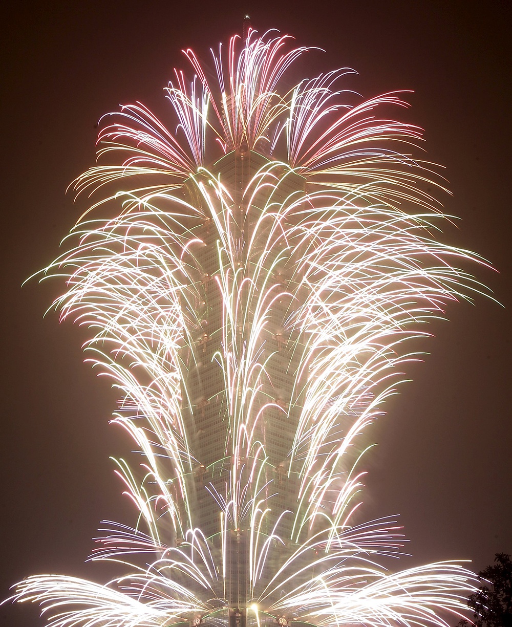 Màn pháo hoa đặc biệt ở tòa tháp Đài Bắc 101, cao nhất đảo Đài Loan, vào thời khắc giao thừa. Ảnh: Reuters