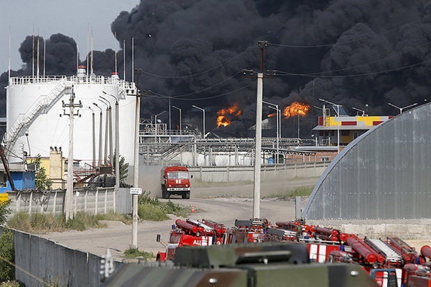 | Zoryan Shkiryak, trợ lý Bộ trưởng Nội vụ Ukraine, cho biết nguyên nhân của vụ việc có thể là do hành động đốt phá hoặc vi phạm các quy định an toàn tại cơ sở chứa dầu. Ngoài ra, nỗ lực lấy cắp nhiên liệu từ một bể chứa cũng là một khả năng đang được cảnh sát điều tra. Ảnh: REX |