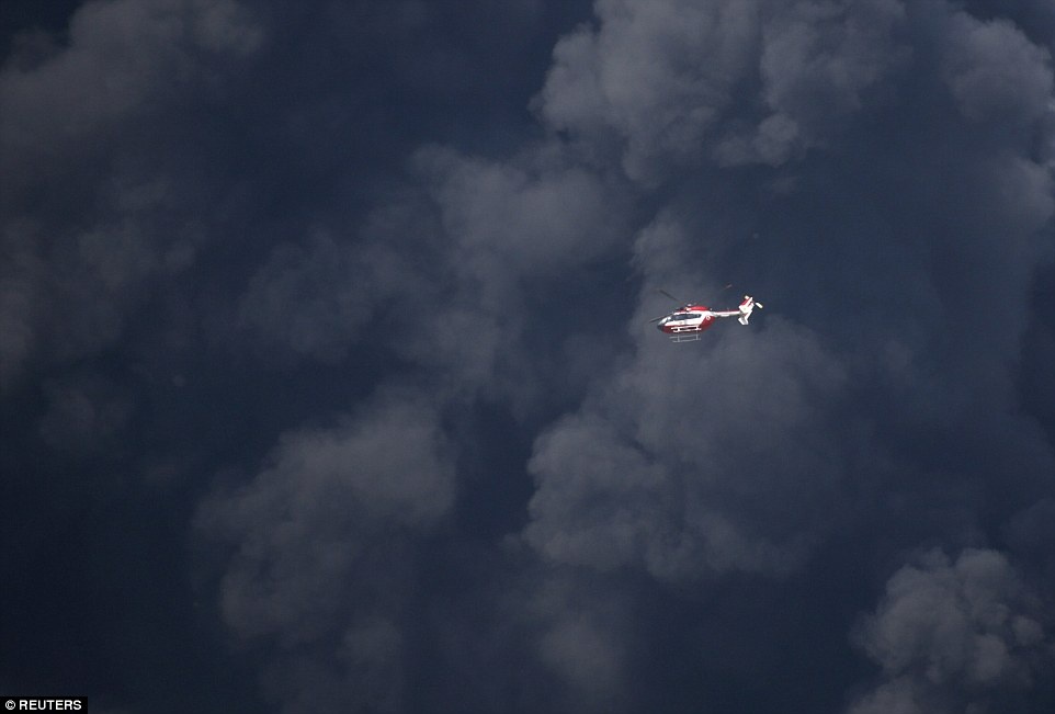| Một trực thăng bay qua đám khói tại khu vực gần thành phố Vasylkiv  sau vụ hỏa hoạn. Chuyên gia Maksim Shingarkin cảnh báo, số ca mắc bệnh ở khu vực sẽ tăng lên sau 3 năm dù hiện tại họ đều khỏe mạnh. Ảnh: Reuters