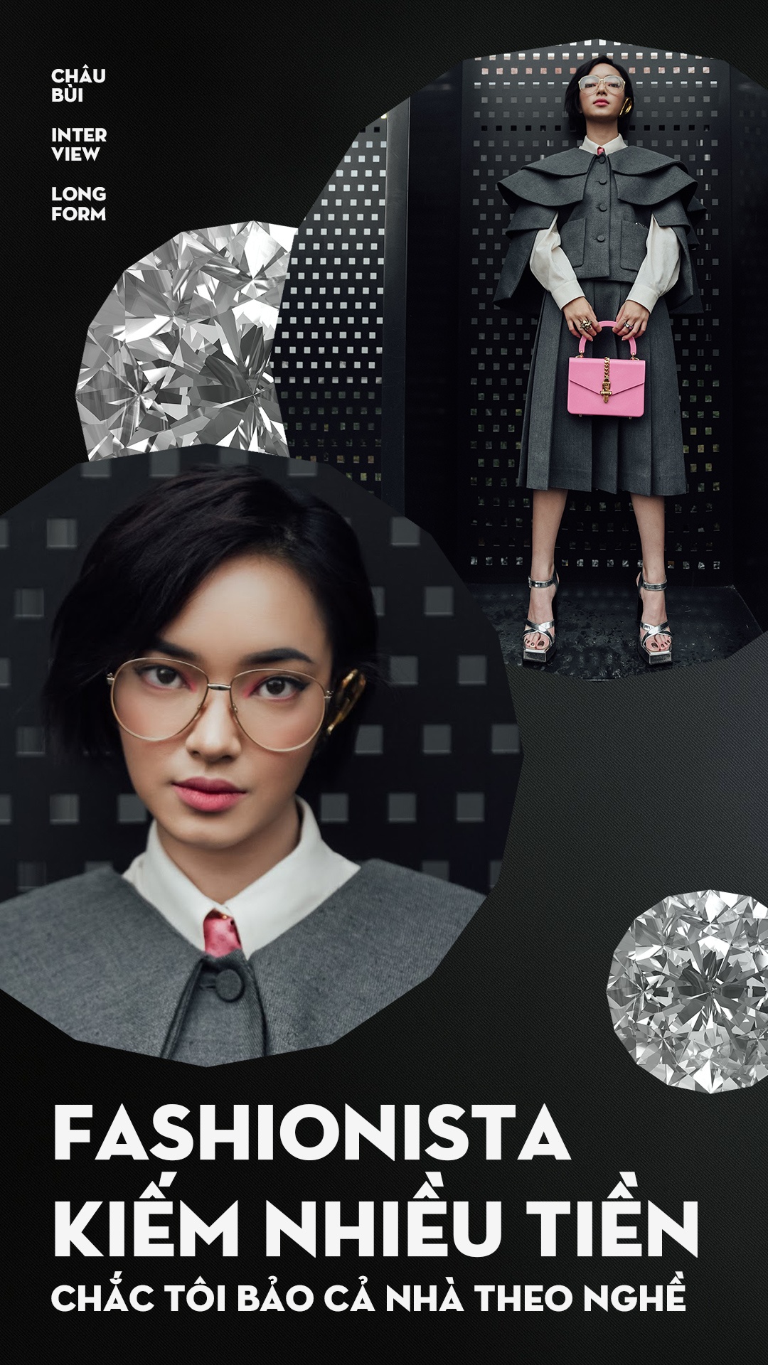 - Nhiều bạn trẻ nghĩ làm fashionista như Châu rất sướng vì luôn xuất hiện xinh đẹp, mặc đồ hiệu và kiếm được nhiều tiền, bạn nói gì về điều này?