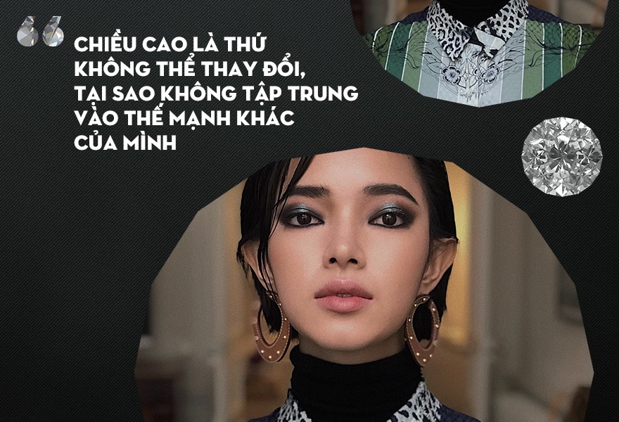 Tôi không có lợi thế về chiều cao nhưng chính nhược điểm này khiến tôi tự tin và khác biệt. Nếu đúng chuẩn người mẫu, mọi người sẽ thấy quá bình thường vì người cao mặc gì cũng đẹp. Chiều cao là thứ không thể thay đổi, tại sao không tập trung vào thế mạnh khác của mình như làm việc có trách nhiệm để mọi người yêu mến cô gái mang tên Châu Bùi hơn.