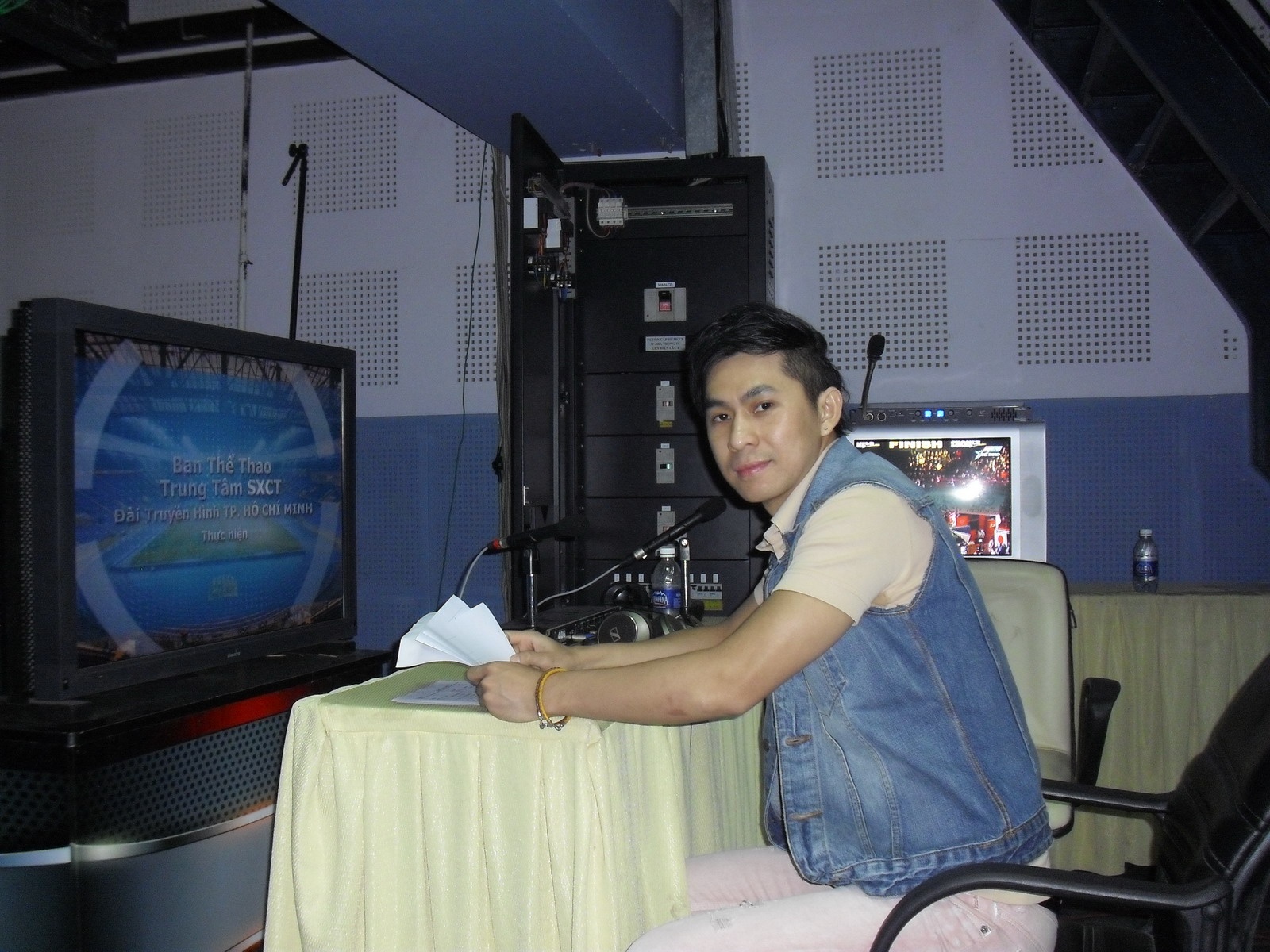 | Nam ca sĩ đã có cơ hội làm quen với ê-kíp làm việc của đài và tìm hiểu thêm về cách xây dựng chương trình. |