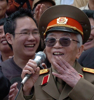 | Anh Võ Hoài Nam (đứng sau Đại tướng Võ Nguyên Giáp) trong lần cùng ông nội về thăm Mường Phăng năm 2004 nhân kỷ niệm 50 năm chiến thắng Điện Biên Phủ. |