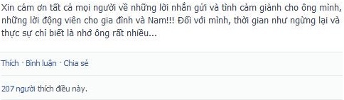 Còn với Võ Hoài Nam (sinh năm 1984) - anh trai của Võ Thành Trung chia sẻ: "Xin cảm ơn tất cả mọi người về những lời nhắn gửi và tình cảm giành cho ông mình, những lời động viên cho gia đình và Nam! Đối với mình, thời gian như ngừng lại và thực sự chỉ biết là nhớ ông rất nhiều..."
