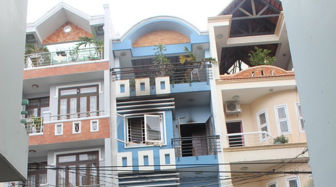| Vụ phóng hỏa gây cháy tại tầng 2 nhà 16A/17 đường Vũ Ngọc Phan, P.13, Q.Bình Thạnh (căn nhà màu xanh). |