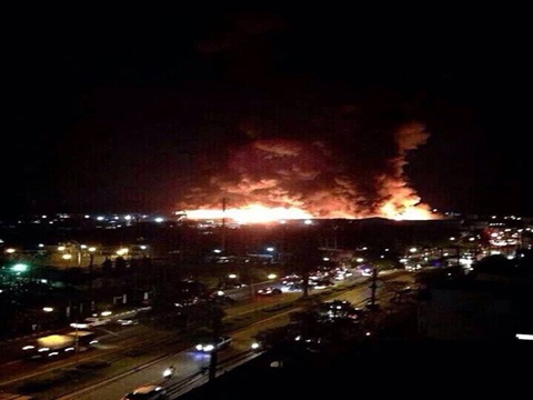 | Ngọn lửa bùng phát, rực sáng trong khi có hàng trăm khách hàng và khoảng 1.000 nhân viên đang ở bên trong. |