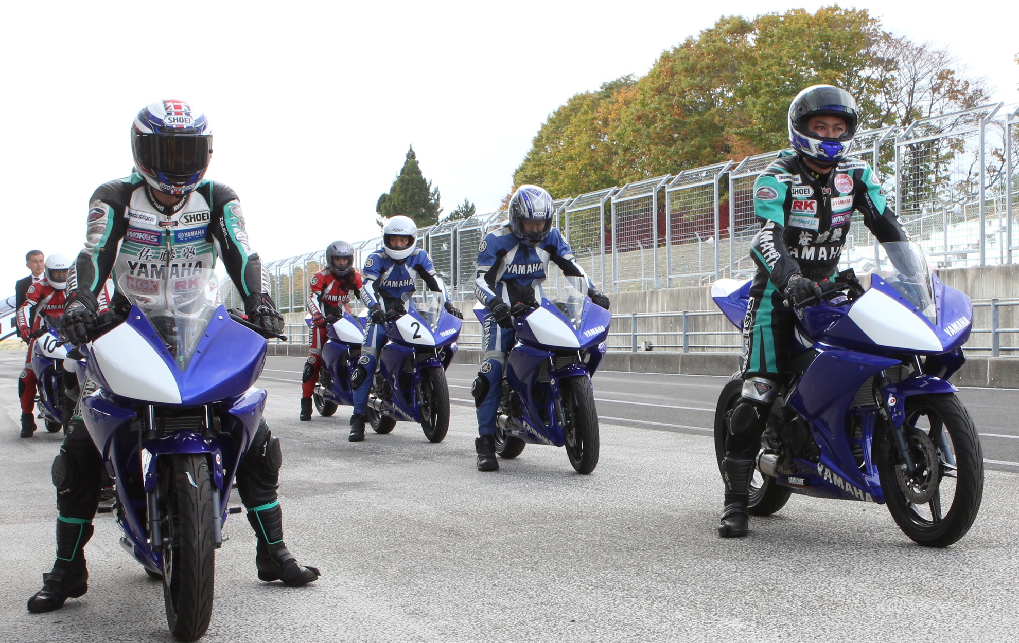 Yamaha cung cấp 8 chiếc YZF-R15 đã độ lại cho người lái làm quen đường chạy. Mỗi nhóm 3 người sẽ được dẫn dắt bởi một chuyên gia đi đầu. Sau 3 vòng thử, phần lớn các tay nài đều nắm được sa hình trường đua Sugo.