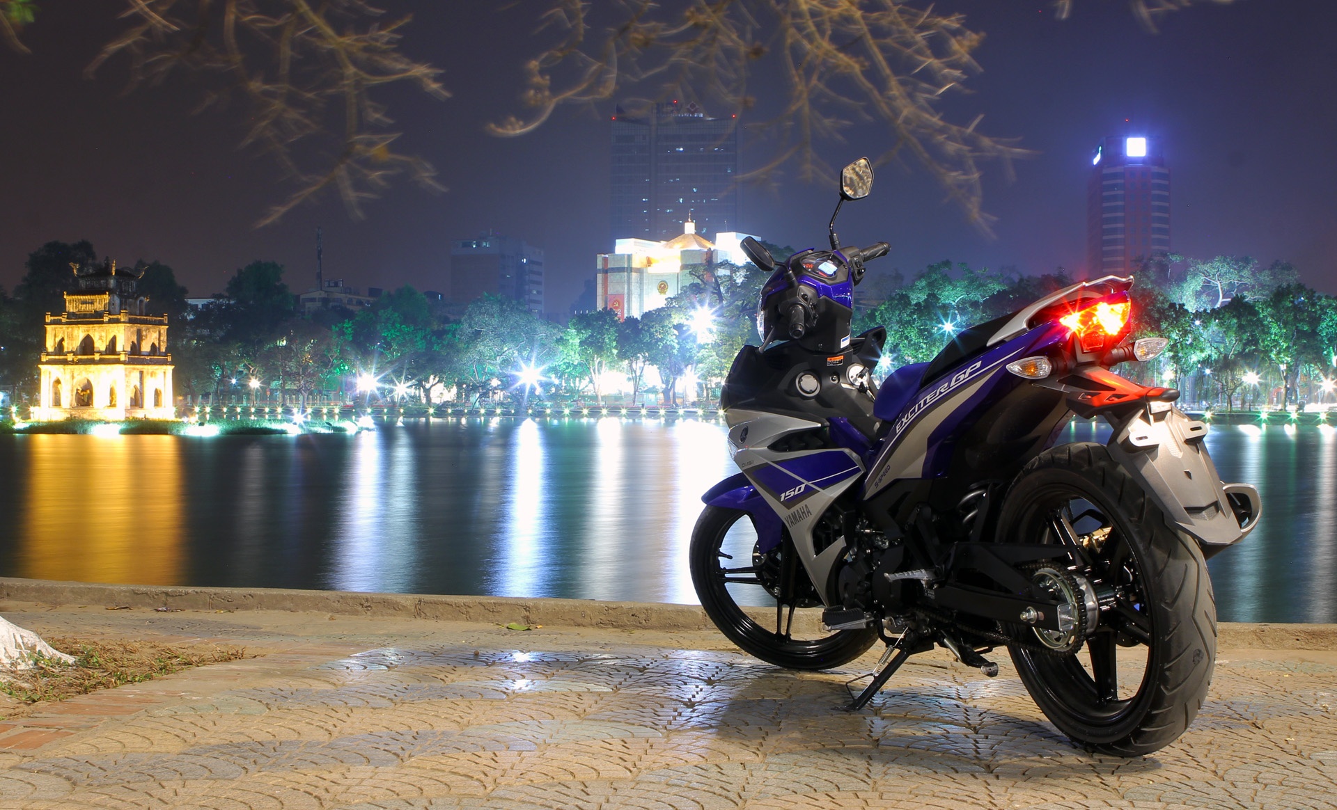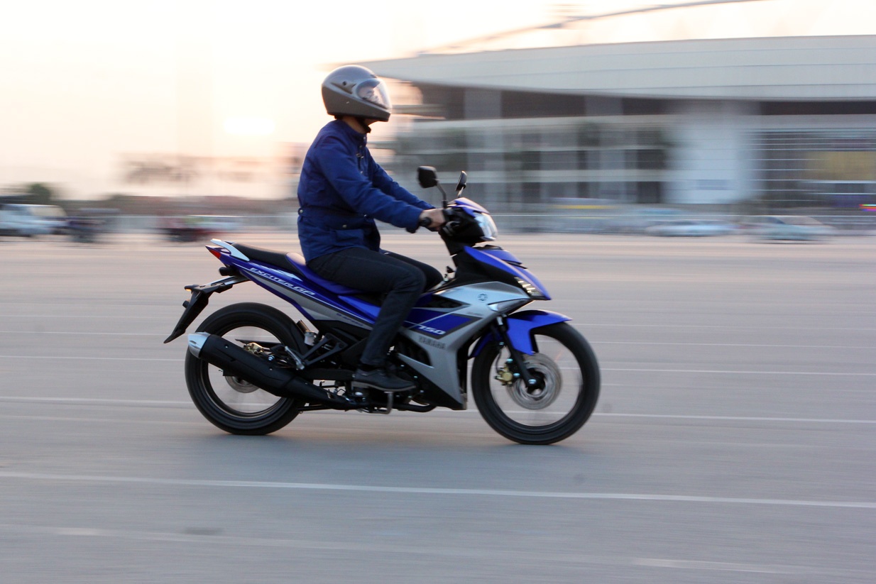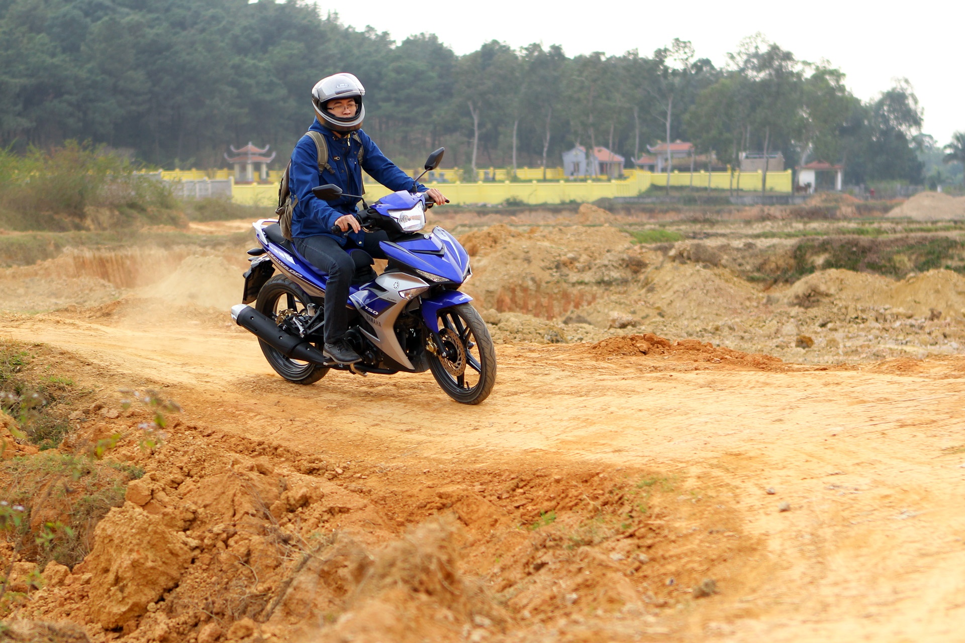 | Exciter 150 thể hiện khả năng vào cua ổn định nhờ kích thước lốp sau lớn. |