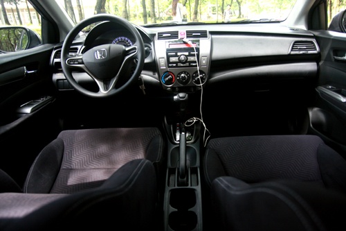 Bước vào bên trong, nội thất Honda City ấn tượng với thiết kế hiện đại, cách bố trí bảng điều khiển, hàng ghế trước, sau, hộc để đồ... khá hợp lý như vẫn thường thấy trên các mẫu xe khác của Honda. Khác với đối thủ Nissan Sunny, ghế ngồi của Honda City có chất liệu nỉ nên nhìn không sang trọng bằng chất liệu da. Ghế lái cũng phải chỉnh tay để điều chỉnh độ cao hay tựa lưng. Trần xe hơi thấp nên khi nâng độ cao ghế lái, đầu người lái rất dễ chạm trần.