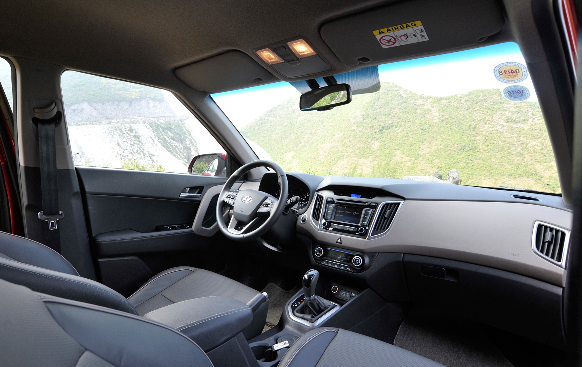 Nội thất của Hyundai Creta nổi bật với ghế da, sử dụng công nghệ kháng khuẩn chống mùi. Hệ thống giải trí ở mức cơ bản với CD/MP3/Bluetooth/USB/AUX, 6 loa tiêu chuẩn. Ghế lái chỉnh điện 8 hướng, vô-lăng tích hợp phím nghe nhận cuộc gọi, chuyển bài hát, điều chỉnh cài đặt thông số trên xe. Khởi động nút bấm và chìa khóa thông minh là trang bị tiêu chuẩn. Sự vắng mặt của điều khiển hành trình Cruise Control là một thiếu sót khá đáng tiếc.