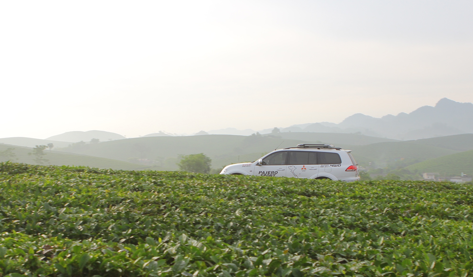 Trên các đoạn đường đất đá khu vực đồi chè nông trường Mộc Châu, nhờ khoảng sáng gầm xe tốt và hệ dẫn động hai cầu, Pajero Sport cho khả năng leo đồi khá ấn tượng. Hệ thống Super Select cho khả năng chuyển cầu từ chế độ 2H sang 4H, 4HLc ngay cả khi đang di chuyển.