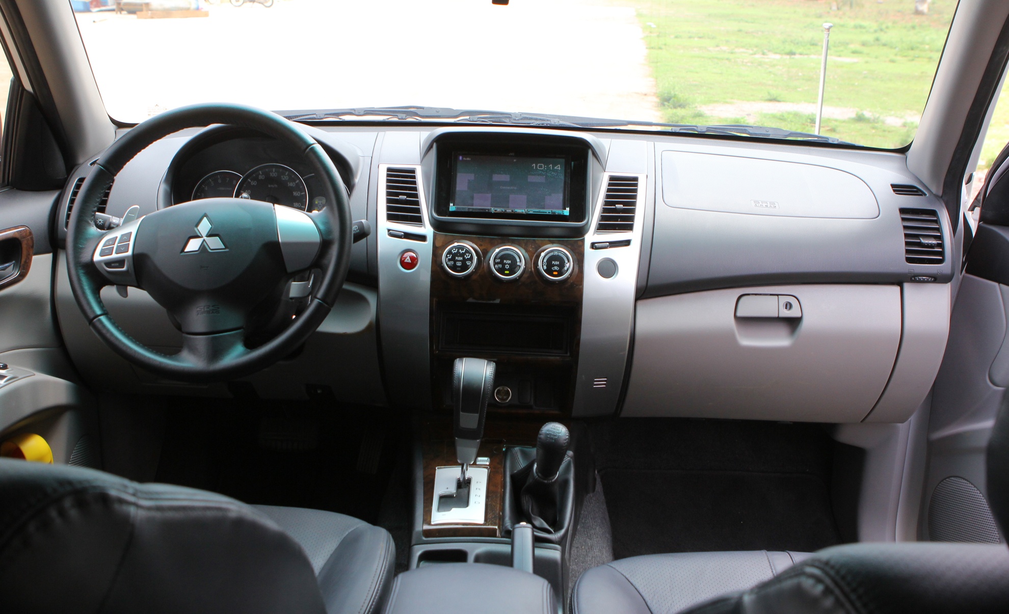 Pajero Sport khởi động bằng chìa khóa. Ghế lái được bọc da và hoàn toàn chỉnh điện. Bậc lên xuống thiết kế dạng ống. Cabin rộng rãi, hiện đại và thể thao mang đến cho người lái cảm giác như đang ngồi trong một chiếc bán tải hầm hố. Gương chiếu hậu kích thước lớn cho tầm quan sát phía sau tốt. Ngoài ra, nó còn được tích hợp đèn báo rẽ xi-nhan và có mặt ngoài mạ chrome.