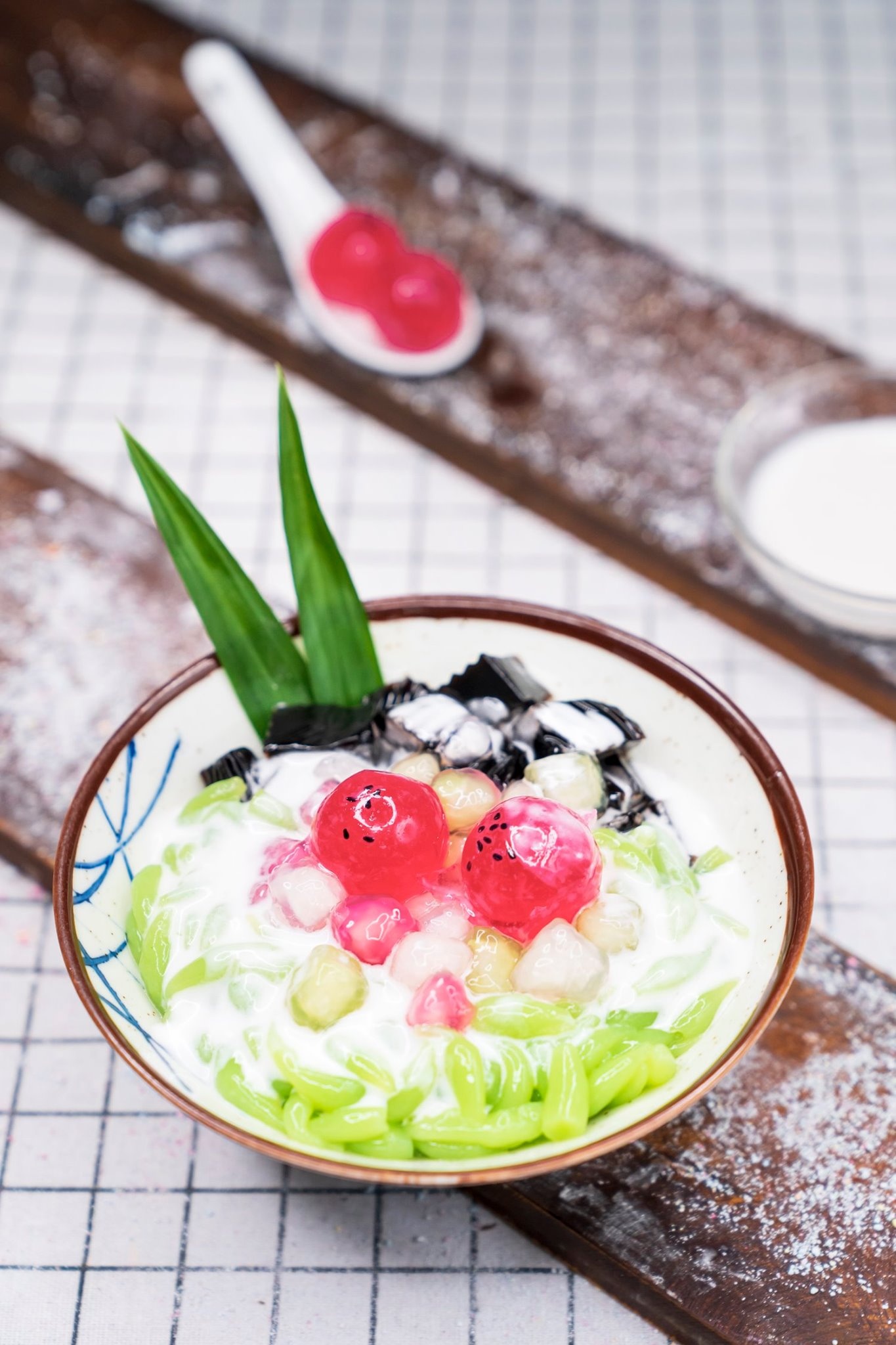 | Đặc biệt, chè bánh lọt trân châu hay chè bưởi làm từ sợi bưởi, đậu xanh, nước cốt dừa... với sắc màu cuốn hút là một trong những hương vị hút khách của tiệm. Ngoài ra, thực đơn quán còn có loạt món thơm mát khác như flan sương sáo, sữa chua trân châu cốt dừa... Mức giá dao động từ 20.000-35.000 đồng. Ảnh: Chebuoitusac. |