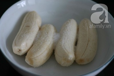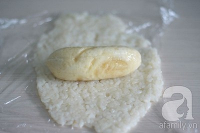 | Đặt chuối vào giữa và gói cho kín chuối lại. |