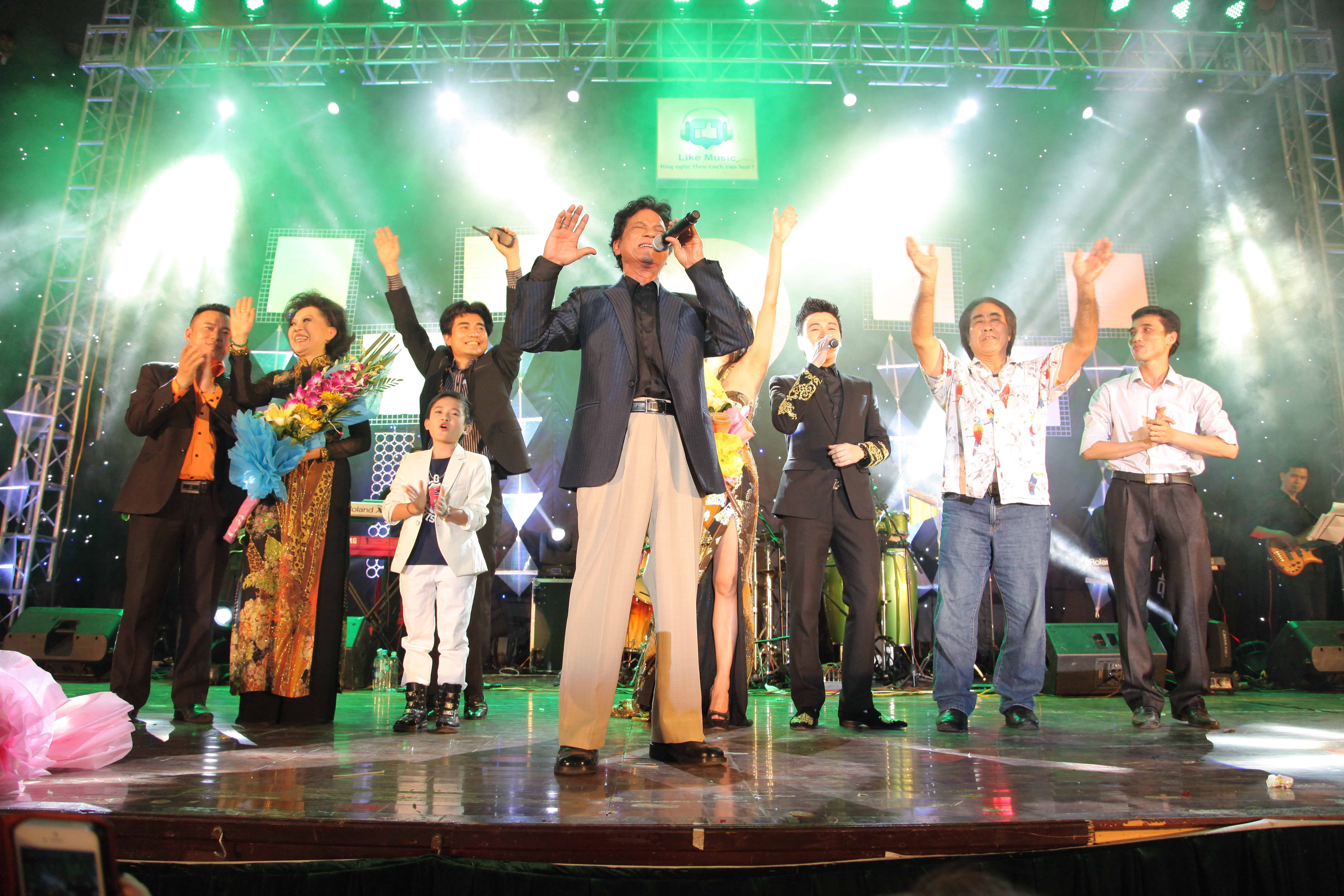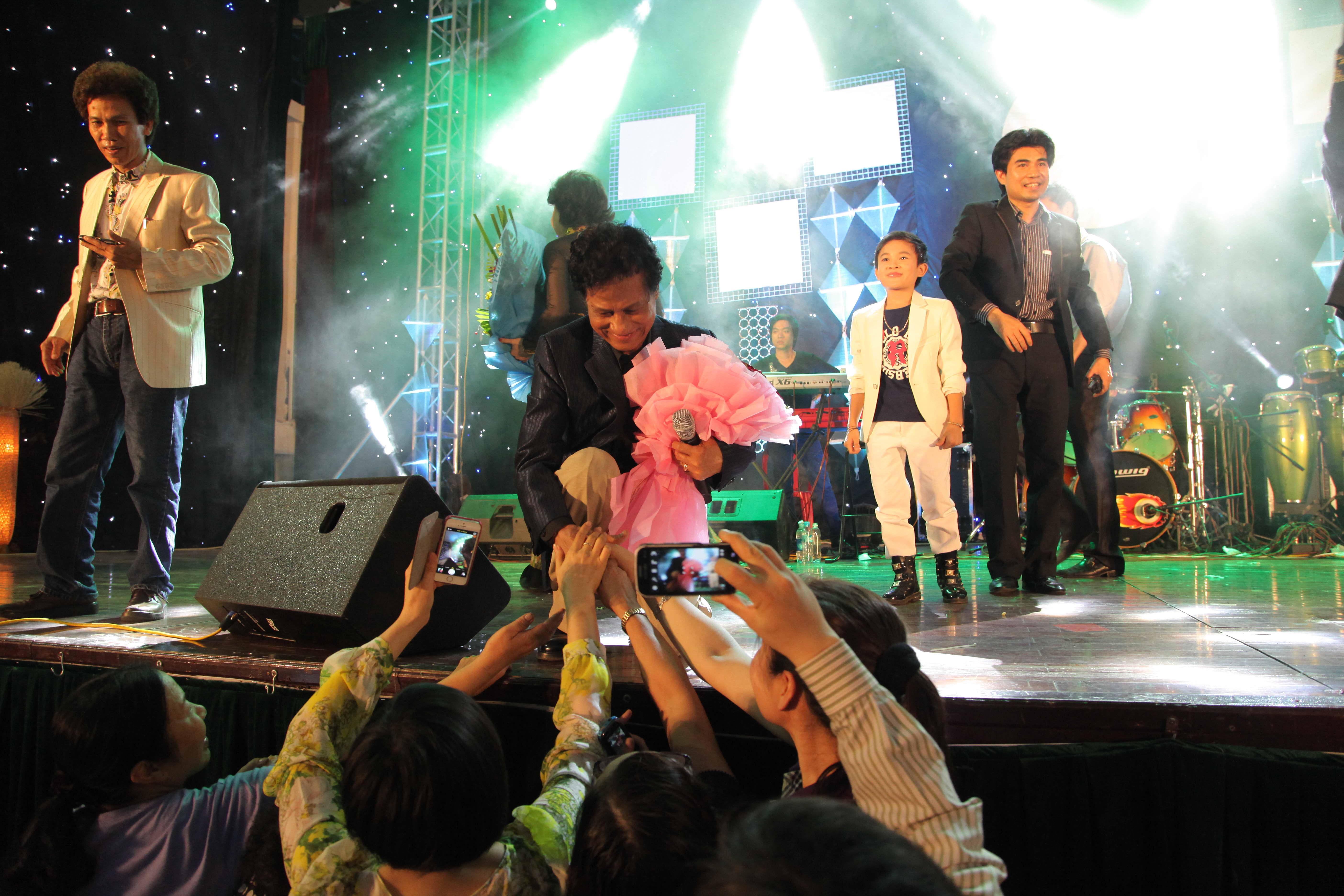 | Trong hơn ba tiếng đồng hồ, Chế Linh liên tục thể hiện những ca khúc gắn với tên tuổi của mình. |