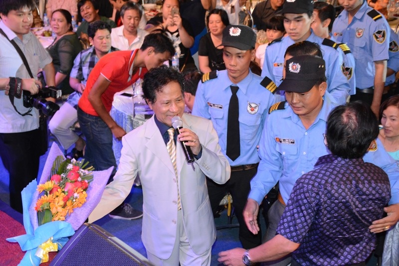 | Danh ca Chế Linh chật vật di chuyển trong vòng vây khán giả. Ảnh: Ái Vân |