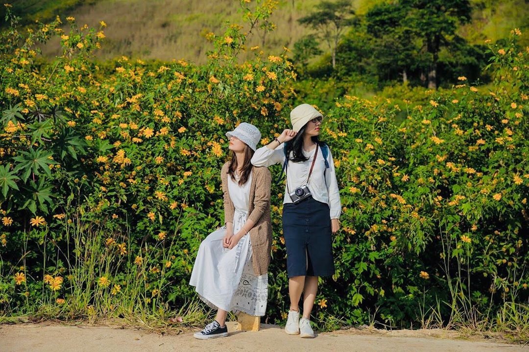 Đặc biệt, đường đến núi lửa Chư Đăng Ya trở nên thơ mộng hơn cả vào khoảng tháng 11, mùa hoa dã quỳ nở. Đi theo con đường đất đỏ lên đỉnh núi, du khách thỏa sức chiêm ngưỡng và check-in cùng rừng hoa dã quỳ vàng rực 2 bên. Vẻ đẹp dung hòa mà dân dã của loài hoa dại càng quyến rũ hơn khi sánh đôi cùng khung cảnh khác lạ của vùng núi lửa Chư Đăng Ya.