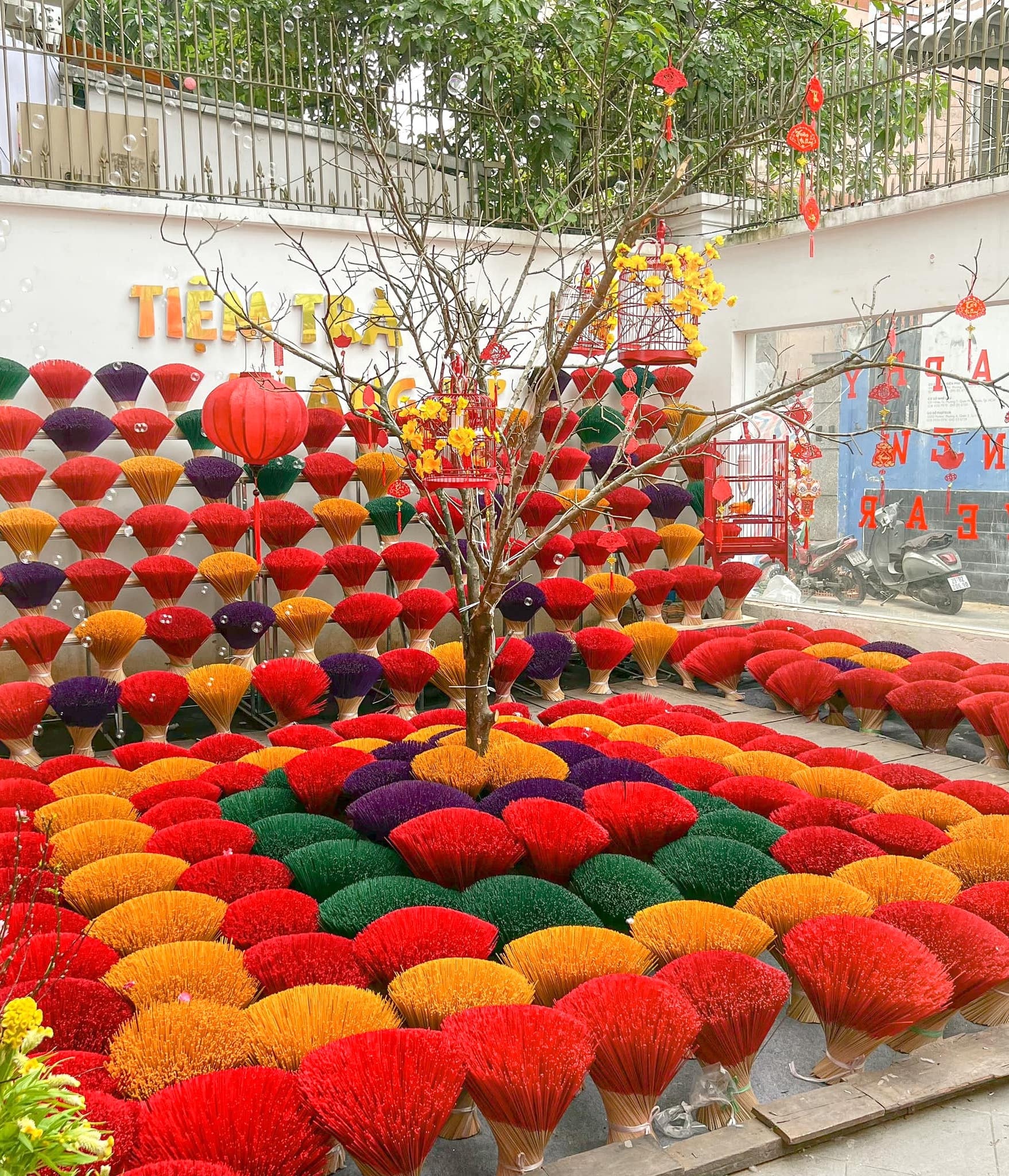 Dịp Tết năm nay, chi nhánh tại Phú Nhuận tái hiện khung cảnh làng hương Thủy Xuân xứ Huế đầy màu sắc. Quán phun bong bóng vào các khung giờ cao điểm như 12h, 18h và 20h.