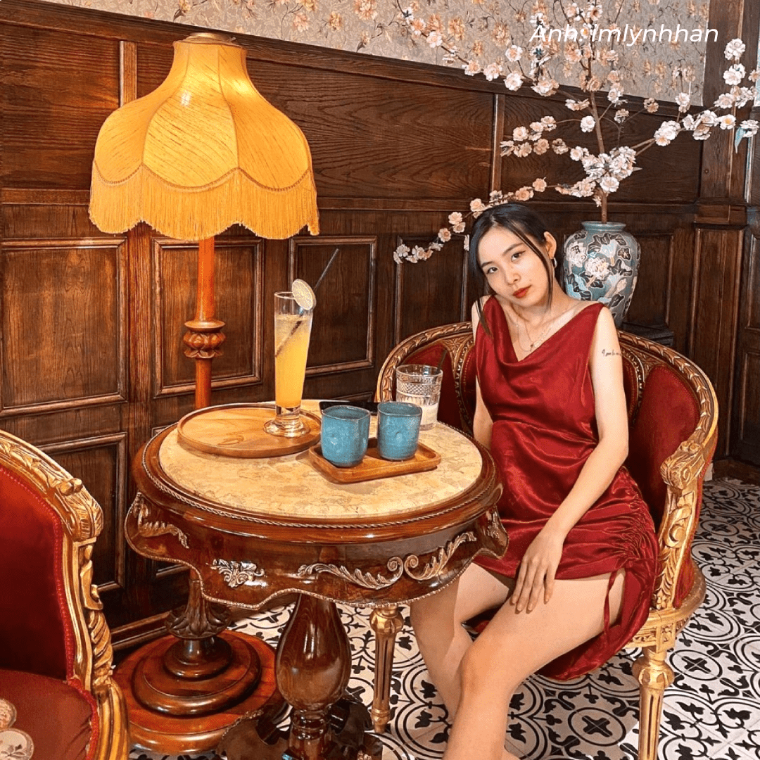 Quán có hai tầng, được thiết kế theo gam màu trầm ấm, cổ điển, kết hợp bàn ghế gỗ nâu làm chủ đạo cùng nhiều đồ trang trí cổ. Diện tích khá rộng, chỗ ngồi thoải mái, có nhiều góc để sống ảo.