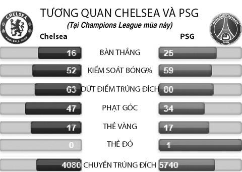 100. Lịch sử đang chống lại Chelsea khi 100% các đội bóng Pháp đều giành quyền đi tiếp sau khi thắng với khoảng cách 2 bàn ở lượt đi. Chưa hết, kể từ khi Champions League ra đời (mùa 1992/93) thì 78% các đội sau khi thắng 3-1 trên sân nhà lượt đi sau đó đều giành quyền đi tiếp. The Blues rõ ràng đang đứng trước sứ mệnh chống lại lịch sử nếu muốn loại PSG.