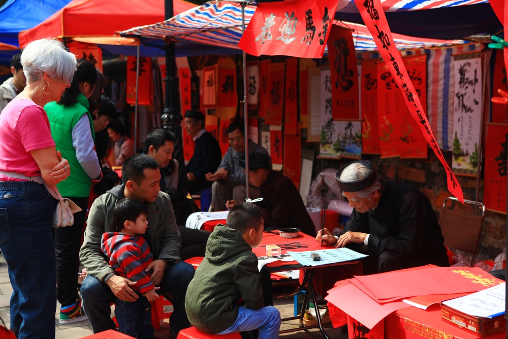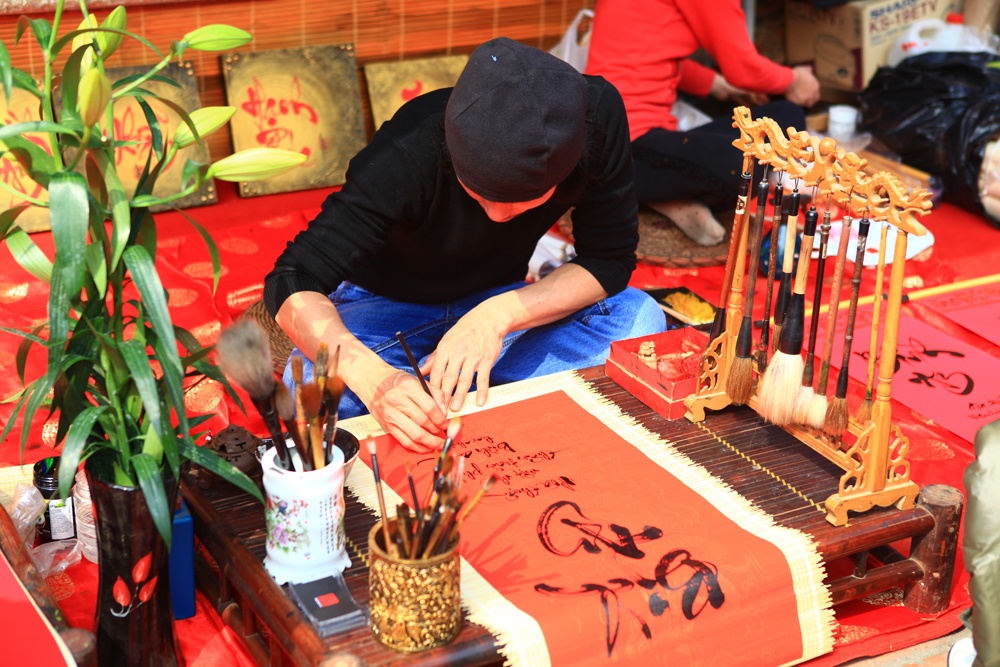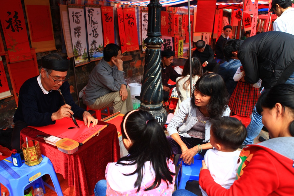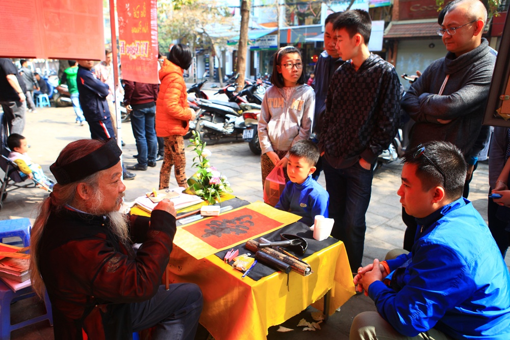 | Nhiều người còn có thú vui xem các ông đồ 'biểu diễn' nghệ thuật thư pháp tài ba. |