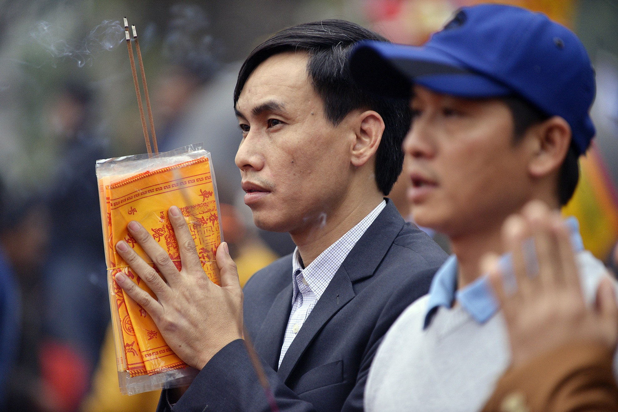 Nhiều người mua xong liền vào các đền để cúng bái, cầu nguyện. |