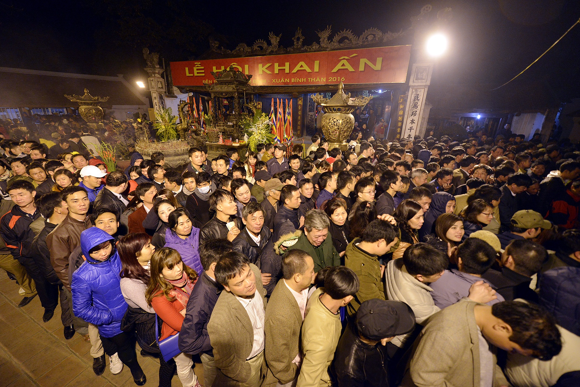 | 4h sáng ngày 22/1, hàng trăm du khách tập trung tại sân đền Thiên Trường để chờ mua ấn Đền Trần. Lần này, ban tổ chức phát ấn từ 5h30 (sớm hơn 30 phút so với mọi năm). |