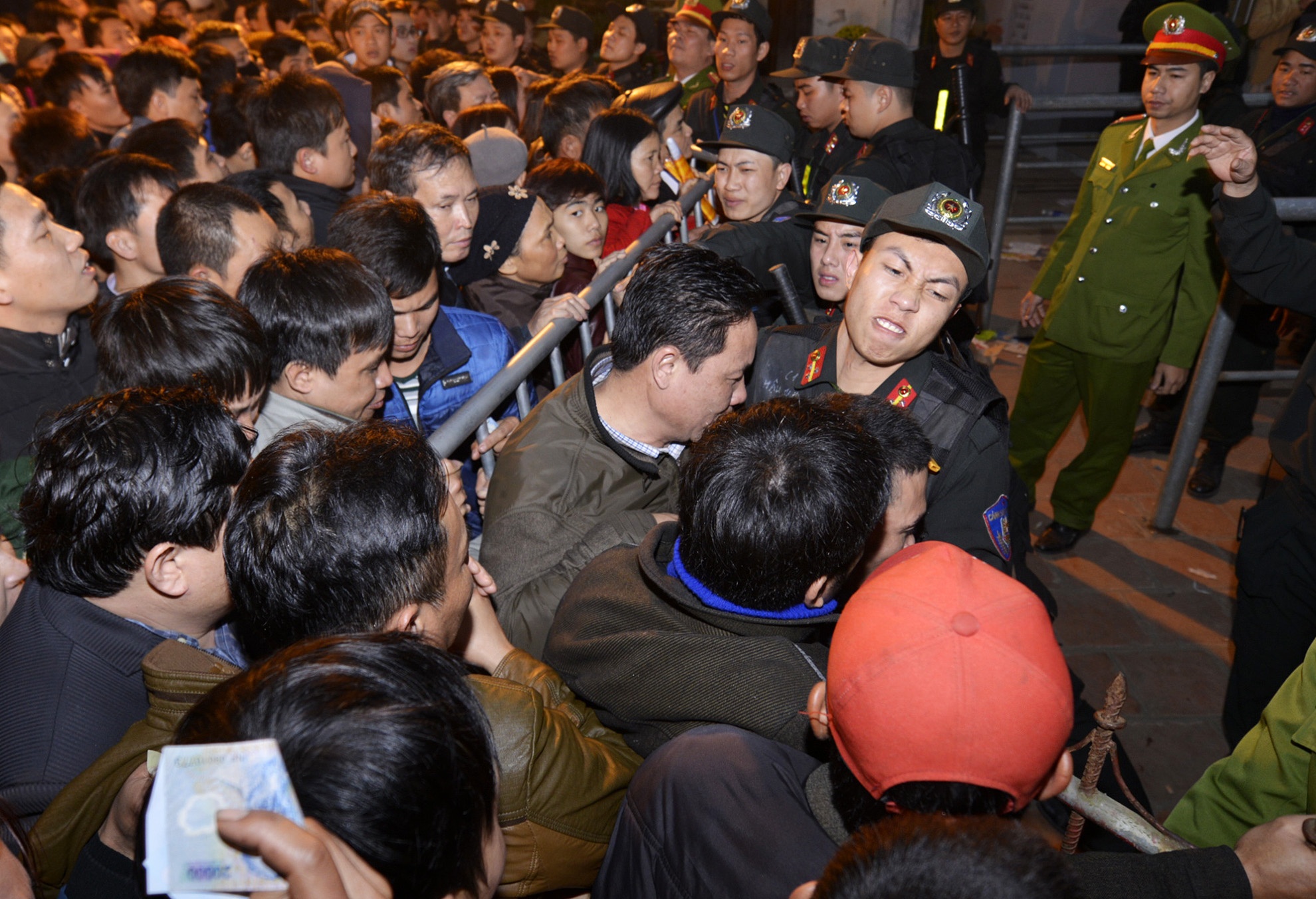 | Lực lượng chức năng huy động hàng trăm cảnh sát, công an nhưng do quá đông người, nhiều lúc đã xảy ra tình trạng lộn xộn, chen lấn xô đẩy. |