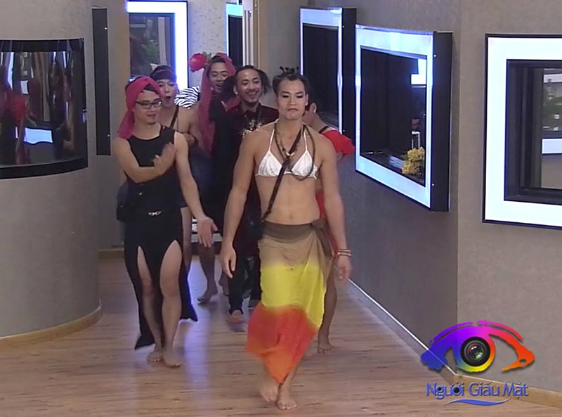 Và lựa chọn để hoàn thành thử thách của Nguyễn Hiền chính là "chuyển giới" cho tất cả 12 thành viên. Trong khi các cô gái khá hiền lành với trang phục đơn giản và chỉ vẽ thêm bộ râu thì các chàng trai được trang điểm, uốn mi cùng những bộ váy áo sexy đã khiến tất cả phải lăn lộn vì... cười.
