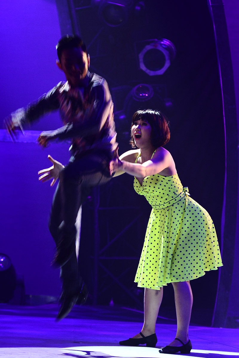 Biên đạo Hoàng Khải đã giúp đỡ cho Minh Trường và Phi Phụng thể hiện thể loại jive trên nền nhạc Kiss you sôi động. Họ vào vai hai vợ chồng trẻ mới cưới đang đi hưởng tuần trang mật. |