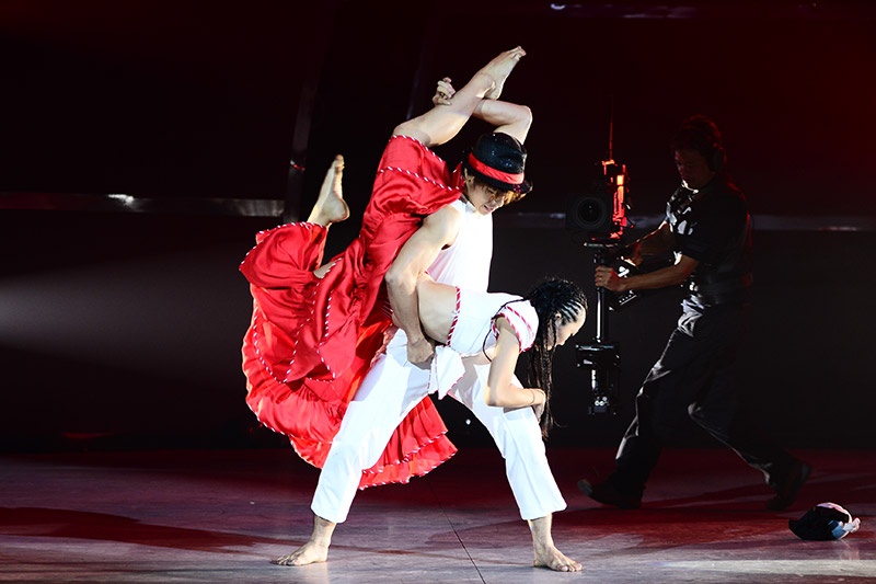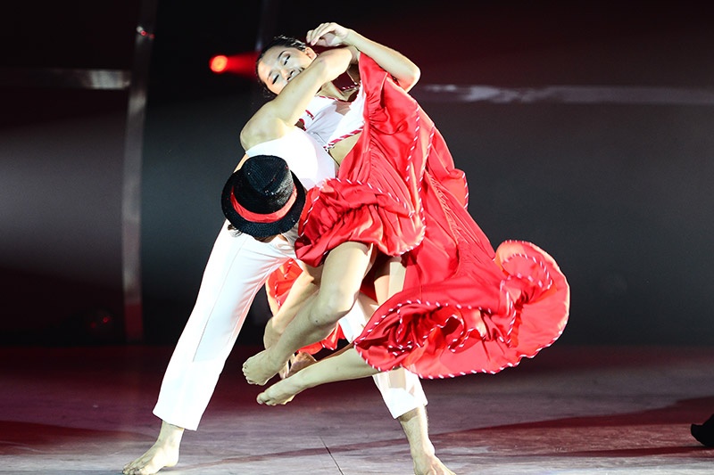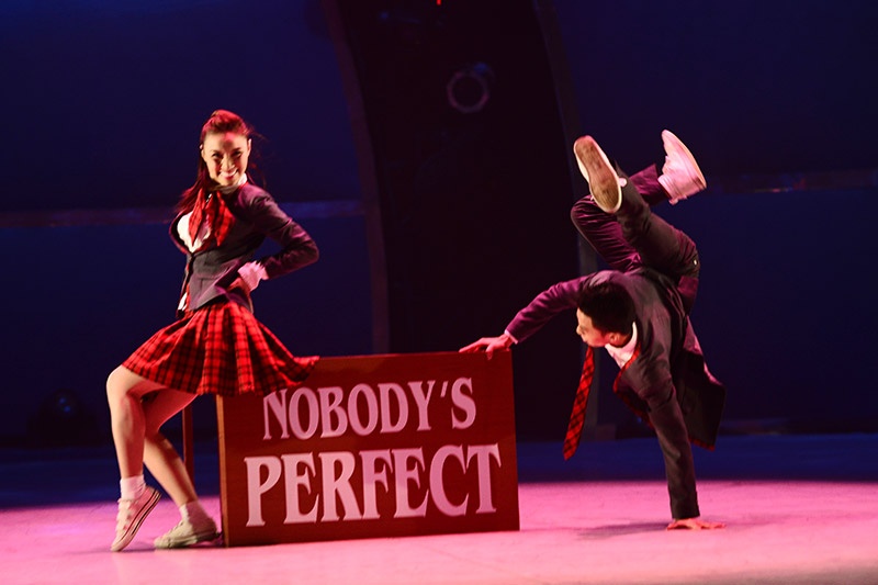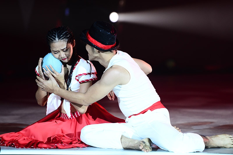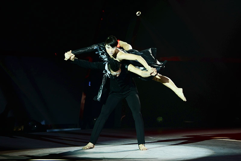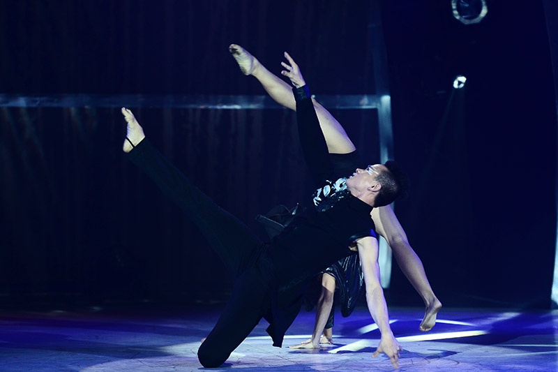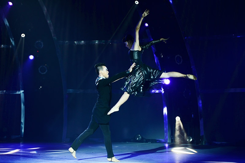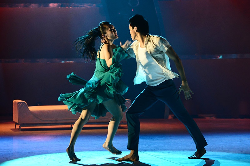 Yêu nhau từ ngoài đời đến sân khấu, Hoàng Minh - Lan Anh phải thể hiện sự giằng xé, đau khổ khi tình yêu bị chia cắt trong múa đương đại trên nền nhạc Just give me a reason. |