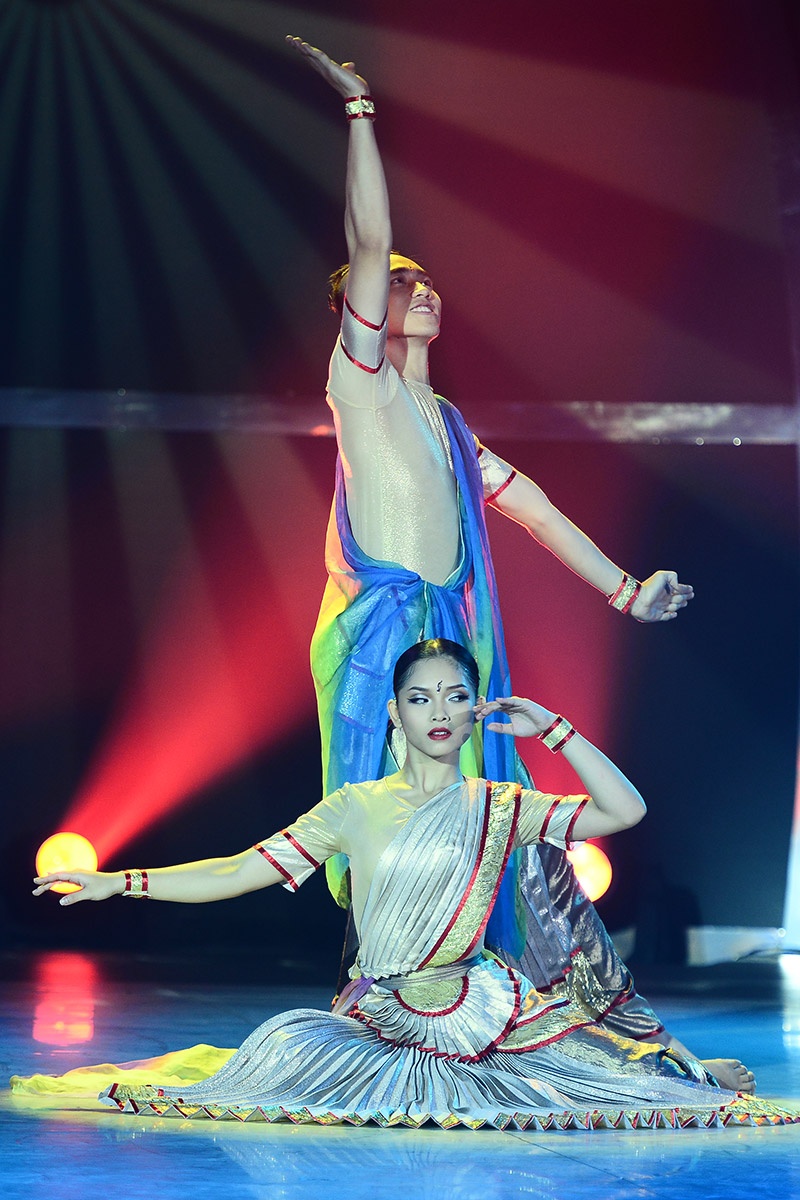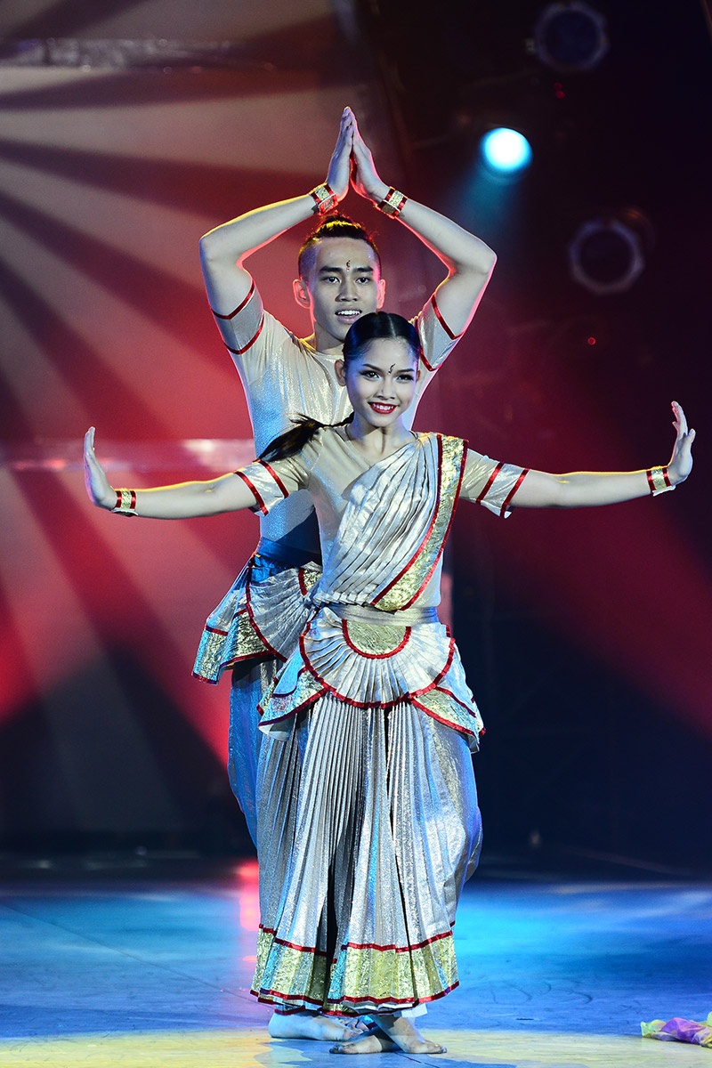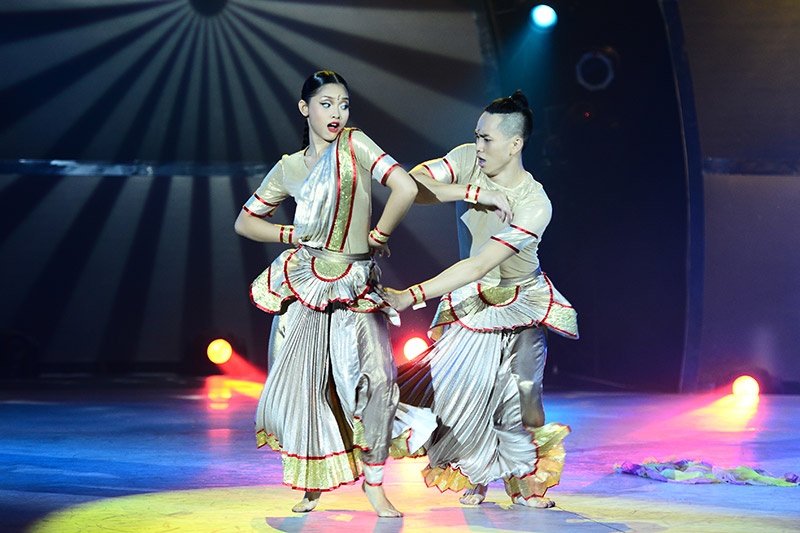 Ánh mắt sắc bén của Gia Hân giúp cô tỏa sáng, lấn át cả Ngọc Thịnh trong vũ điệu Bollywood. Cô gái tuổi 17 đã biết tận dụng biểu cảm từ đôi mắt, lúc sắc sảo, lúc thì vui tươi với nhiều sắc thái khác nhau. |