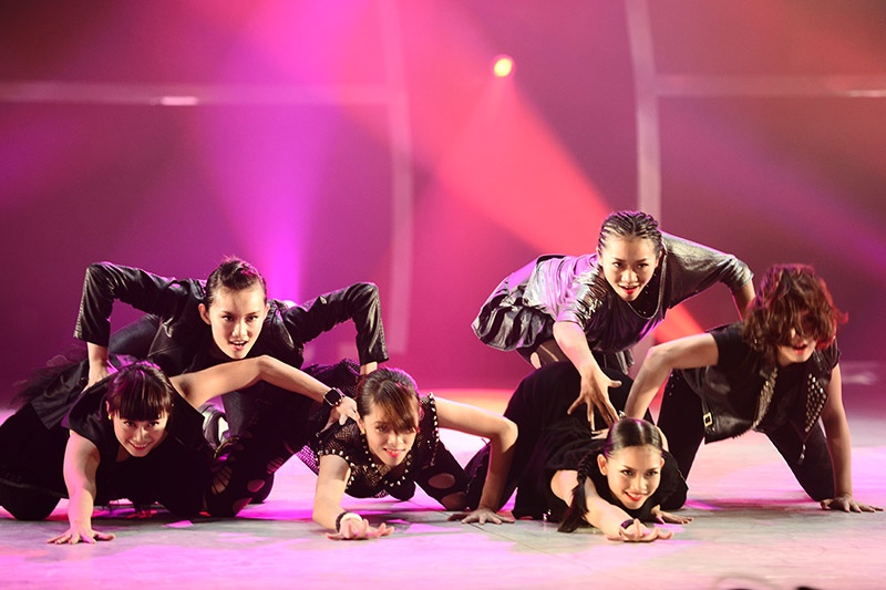 Hà Anh không thể ngừng trầm trồ trước sân khấu đầy sôi động này. Nếu trong tiết mục nhóm của nữ, các giám khảo dễ dàng gọi tên những nhân vật nổi trội thì không tiết mục nhóm nam, top 7 nam đã thắng thế vì mỗi người có một phong cách riêng. |