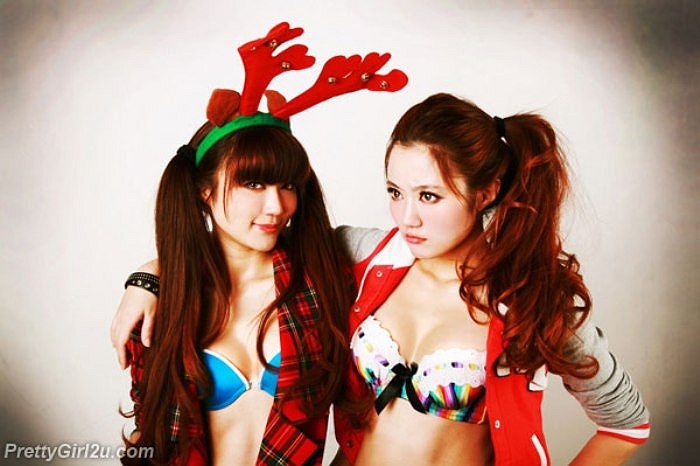 | Khổng Yến Tùng (trái) và em gái Khổng Dao Trúc đọ sắc nhau trong bộ ảnh đầy quyến rũ. |