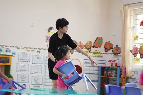 | Cô còn dịu dàng dạy các bé biết tự làm những việc vừa sức mình để lớp học thêm gọn gàng. |