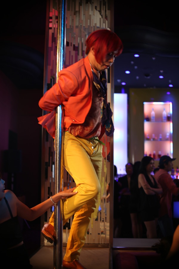 | Thái Hòa lại có dịp "quậy tưng" với nhân vật Phạm Hương Hội, phát huy hết khả năng diễn hài duyên dáng của mình. Trong phim, "chị Hội" sẽ khiến khán giả cười lăn cười bò với những hành động "chỉ có của chị Hội", ví dụ như màn múa cột độc đáo này. |