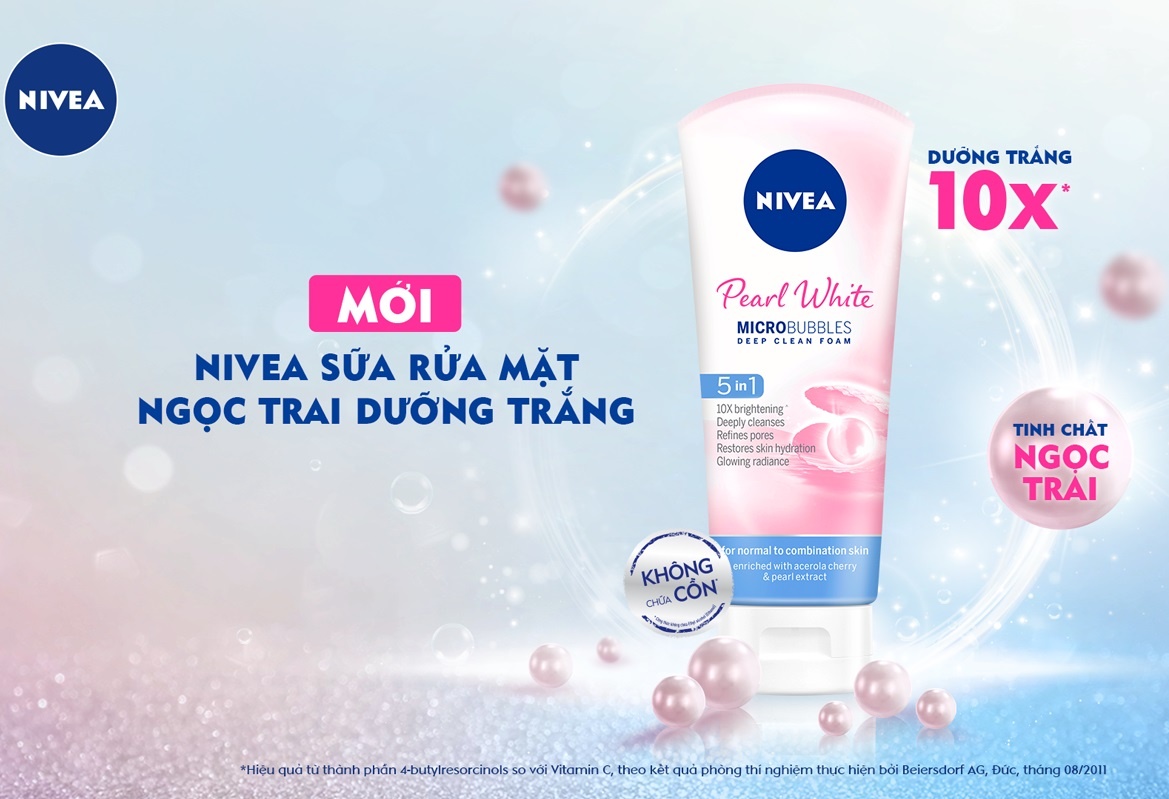 Sữa rửa mặt ngọc trai dưỡng trắng Nivea chứa chiết xuất ngọc trai, giúp dưỡng trắng da hiệu quả gấp 10 lần so với Vitamin C, nhờ thành phần 4-butylresorcinols trong công thức được kiểm nghiệm bởi Beiersdorf AG (Đức) tháng 8/2011. Sản phẩm có công thức làm sạch sâu, loại bỏ tạp chất, làm thông thoáng lỗ chân lông, phù hợp cho mọi loại da. Với bảng thành phần an toàn không cồn và paraben, sữa rửa mặt Nivea ngọc trai dưỡng trắng không làm khô da, giúp da luôn trắng sáng và ẩm mượt.