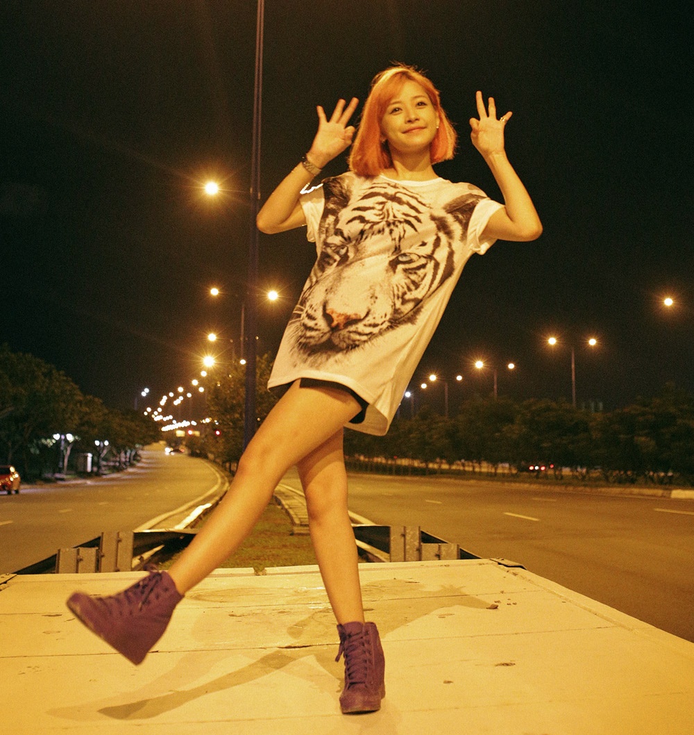 Để đảm nhận vai chính trong bộ phim ngắn "We are Legend" của nhóm nhạc Black Infinity, hot girl Hà thành phải cắt tóc ngang vai và nhuộm đỏ.