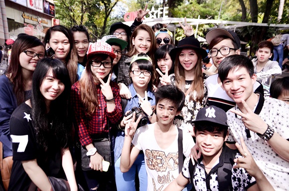 | Chi Pu chụp ảnh lưu niệm cùng các bạn trẻ. |
