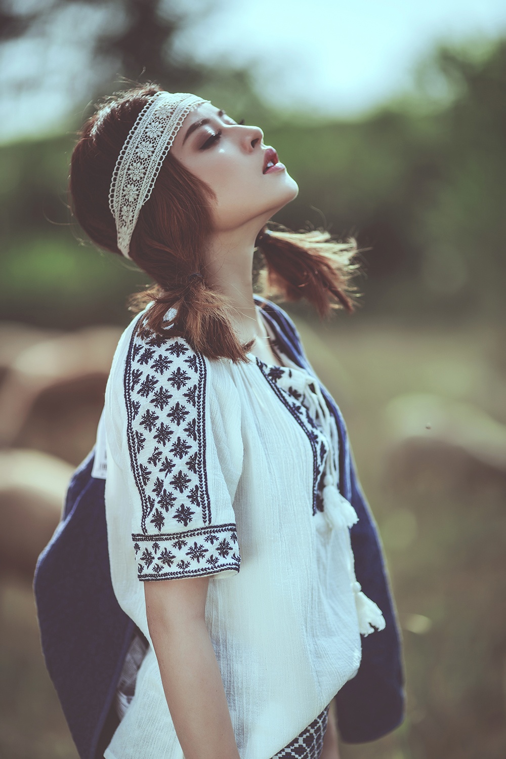 Trong bộ ảnh thực hiện tại Biên Hòa, nữ diễn viên "Vẫn có em bên đời" giới thiệu phong cách thời trang đậm chất đồng quê, hoang dã và gần gũi.