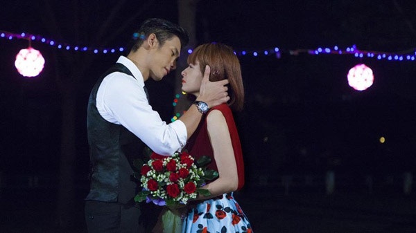 | Nhan Phúc Vinh (Tiến) và Chi Pu (Trang) trong một cảnh lãng mạn. |