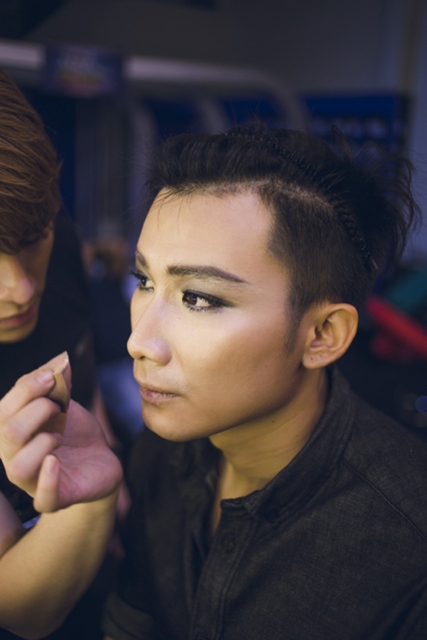 | Để hoá thân thành nữ ca sĩ sexy nhất Hàn Quốc, Chí Thiện mất hơn 1 tiếng để các chuyên viên make up hoá trang. |