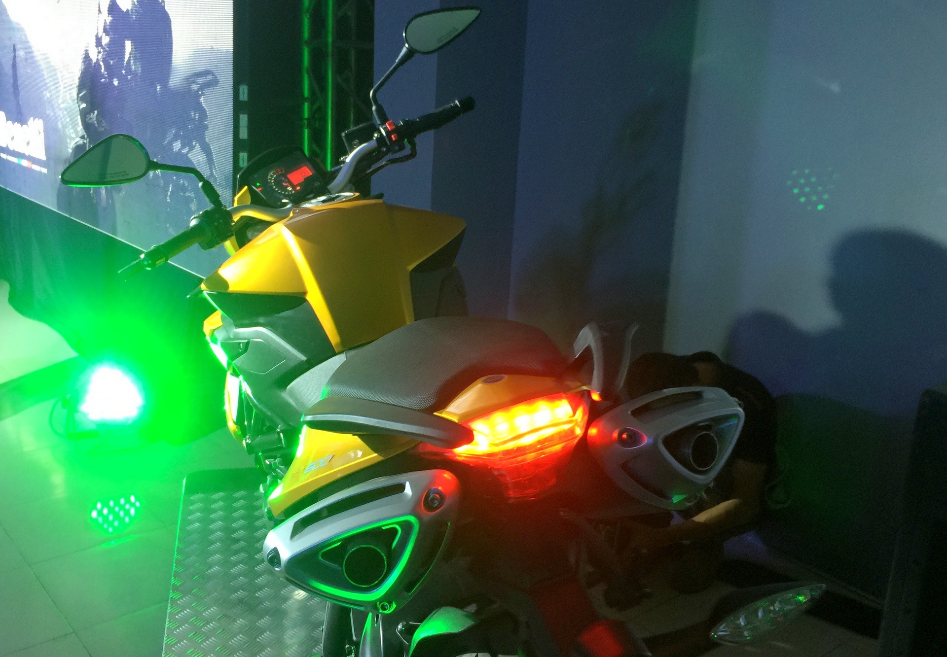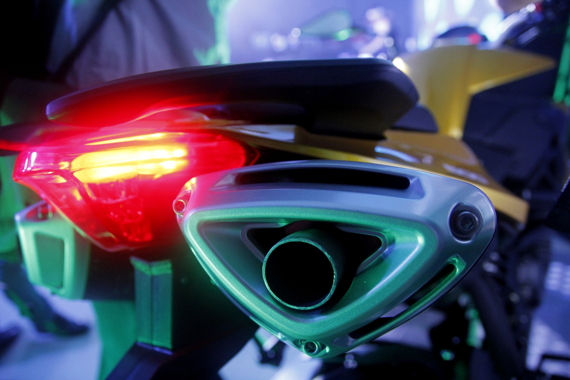 | Ống pô đặt dưới yên là điểm nhấn trong thiết kế của dòng xe này, khiến chiếc xe vạm vỡ hơn ở phần đuôi. Đèn hậu sử dụng công nghệ LED. |