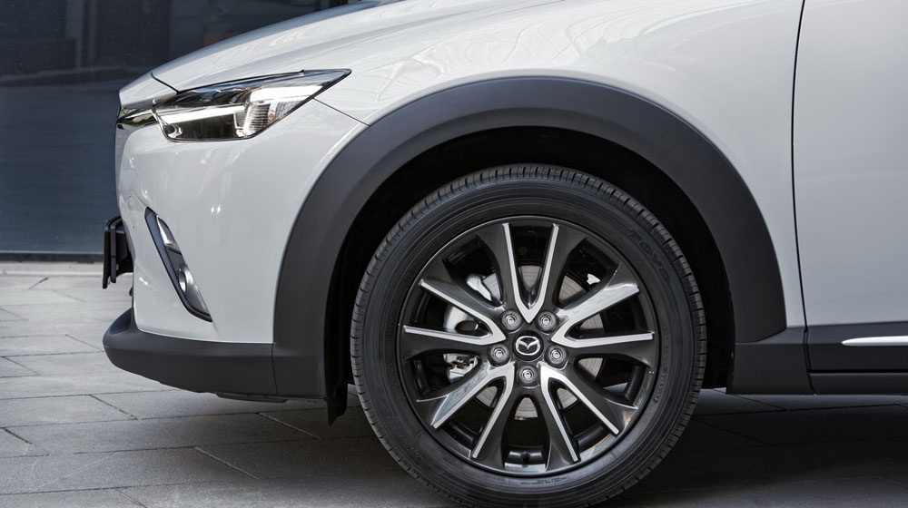 Bản đầu bảng CX-3 Sport Nav là mẫu xe đầu tiên trong phân khúc trang bị đèn pha LED. Ngoài ra, xe còn có la-zăng hợp kim 18 inch và bậc cửa chrome.