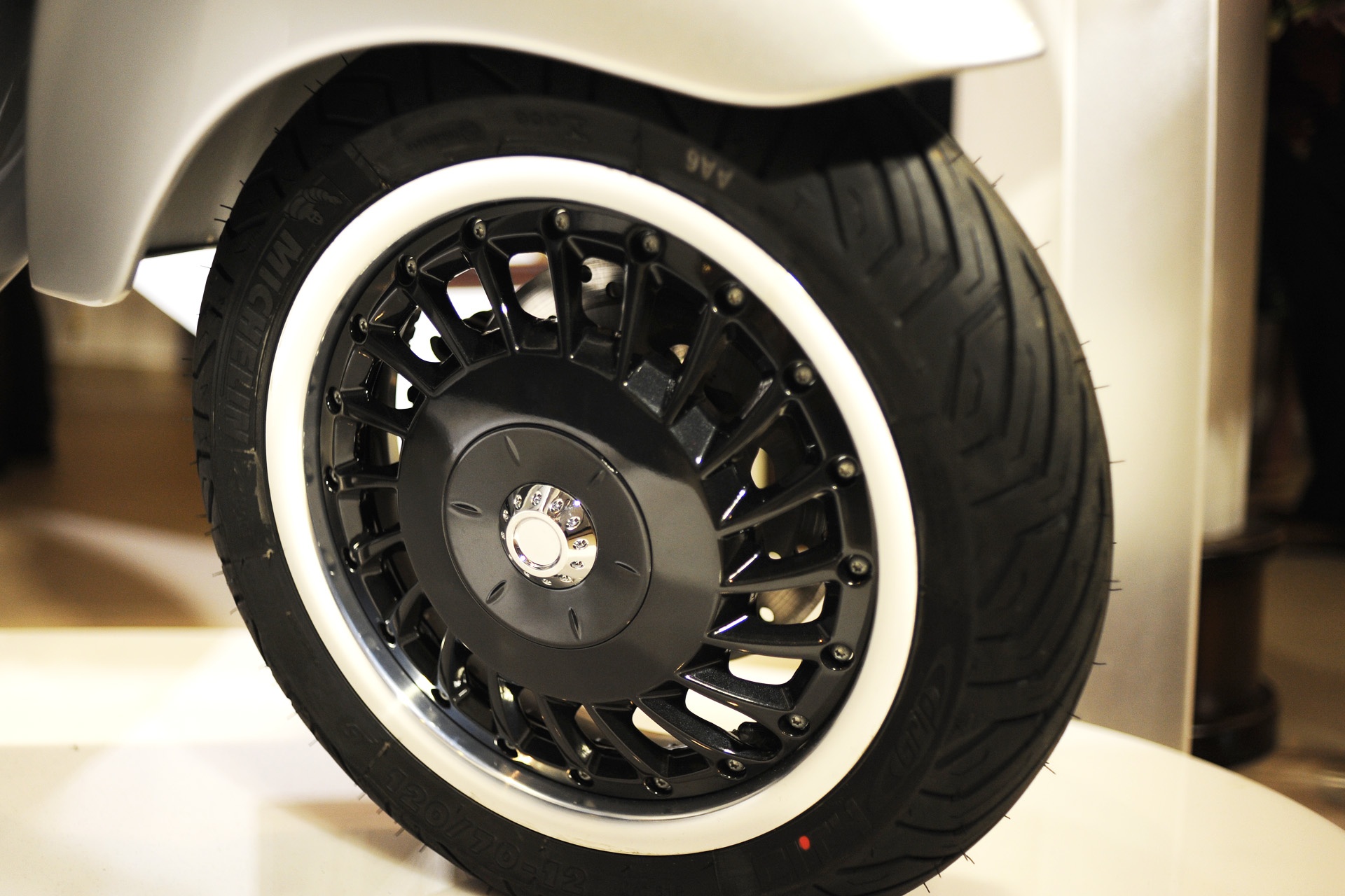 | Khác với phiên bản cũ, Vespa 946 Beliissima được trang bị bộ vành kiểu dáng và màu sắc mới. |